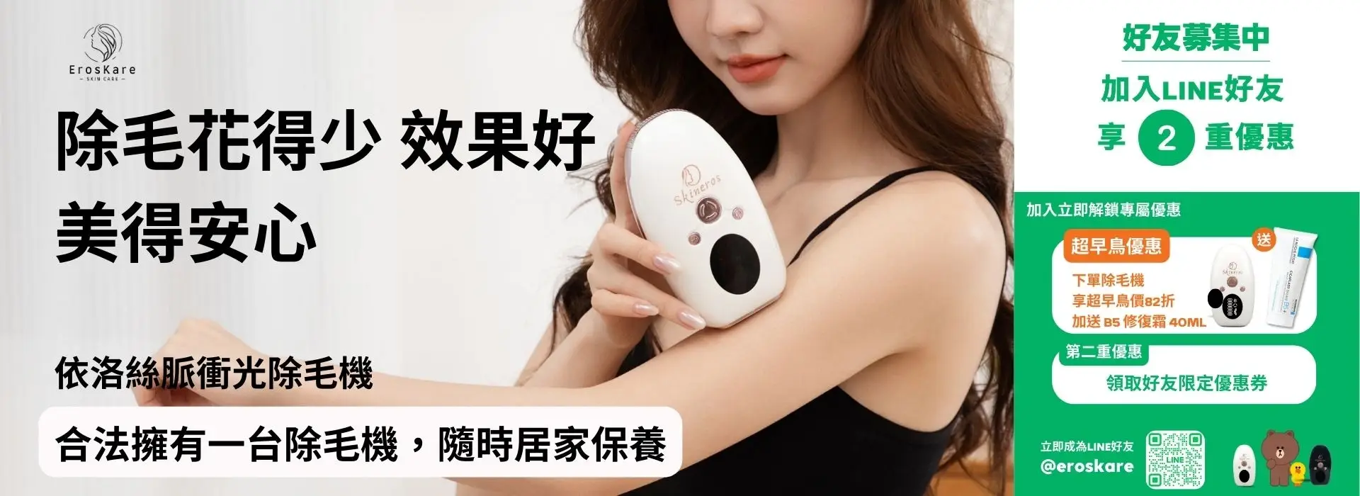 進行專業除毛後,可以在家中用相同技術的除毛機進行後續維護,協助實現居家保養並降低後續毛髮再生機率